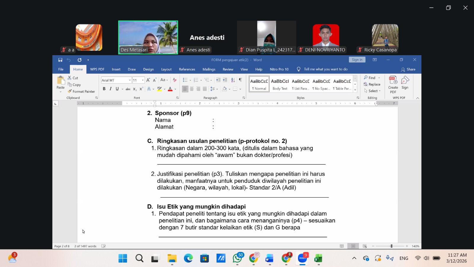 Kegiatan sosialisasi ini menghadirkan dua pemateri, yaitu Ibu Des Metasari dan Ibu Reka Juwita, yang memberikan pemaparan mengenai pentingnya ethical clearance dalam pelaksanaan penelitian kesehatan. Dalam penyampaiannya, para pemateri menjelaskan bahwa ethical clearance merupakan persetujuan etik yang wajib diperoleh sebelum penelitian dilaksanakan, terutama penelitian yang melibatkan manusia sebagai responden.
